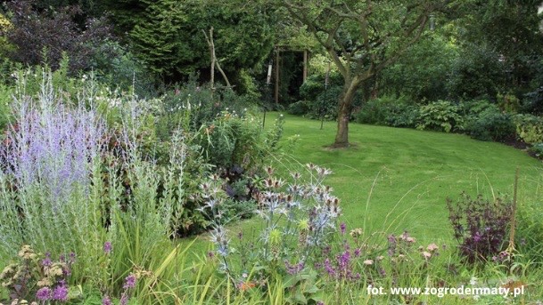 Byliny kwitnące latem i jesienią, np. jeżówkę, rudbekię, liliowiec, lawendę