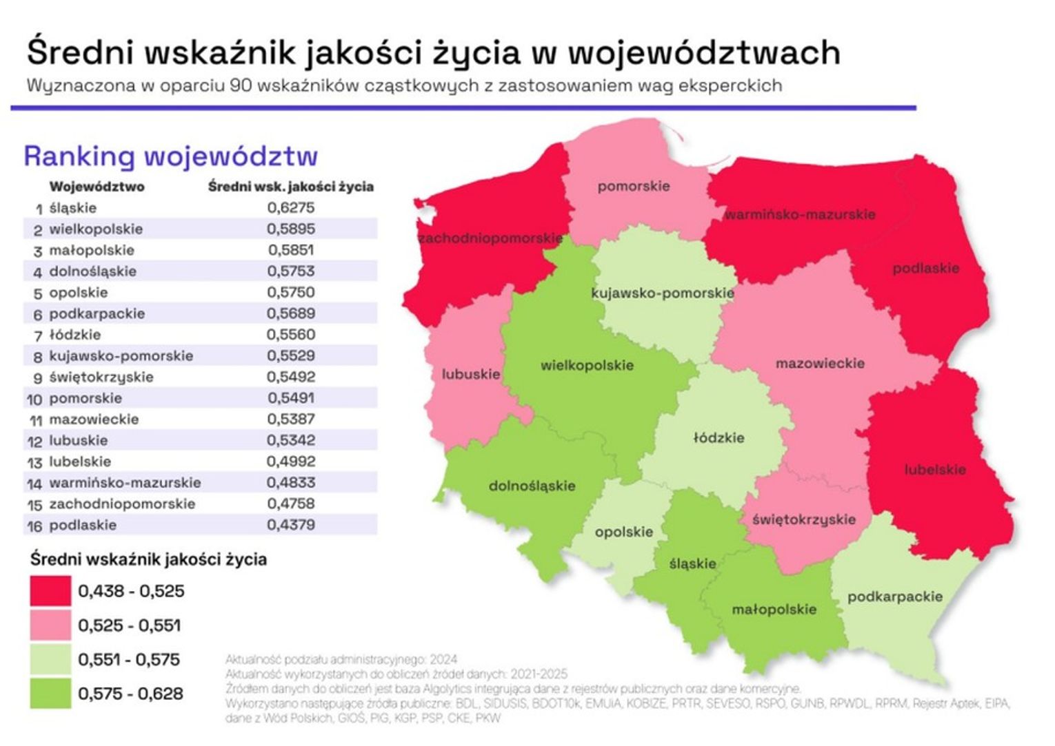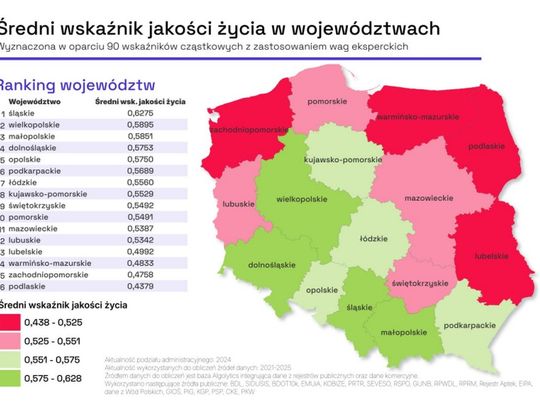 Jeśli chodzi o aktualność danych, to zdecydowana większość wskaźników cząstkowych charakteryzuje się wysoką aktualnością – dane pochodzą z 2024 roku” – podkreślają autorzy zestawienia.