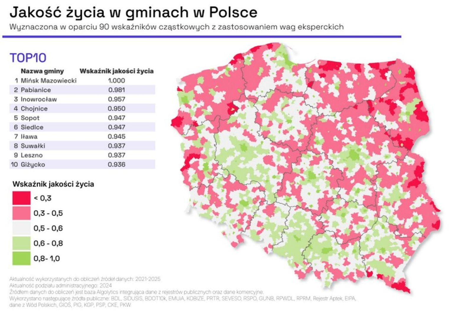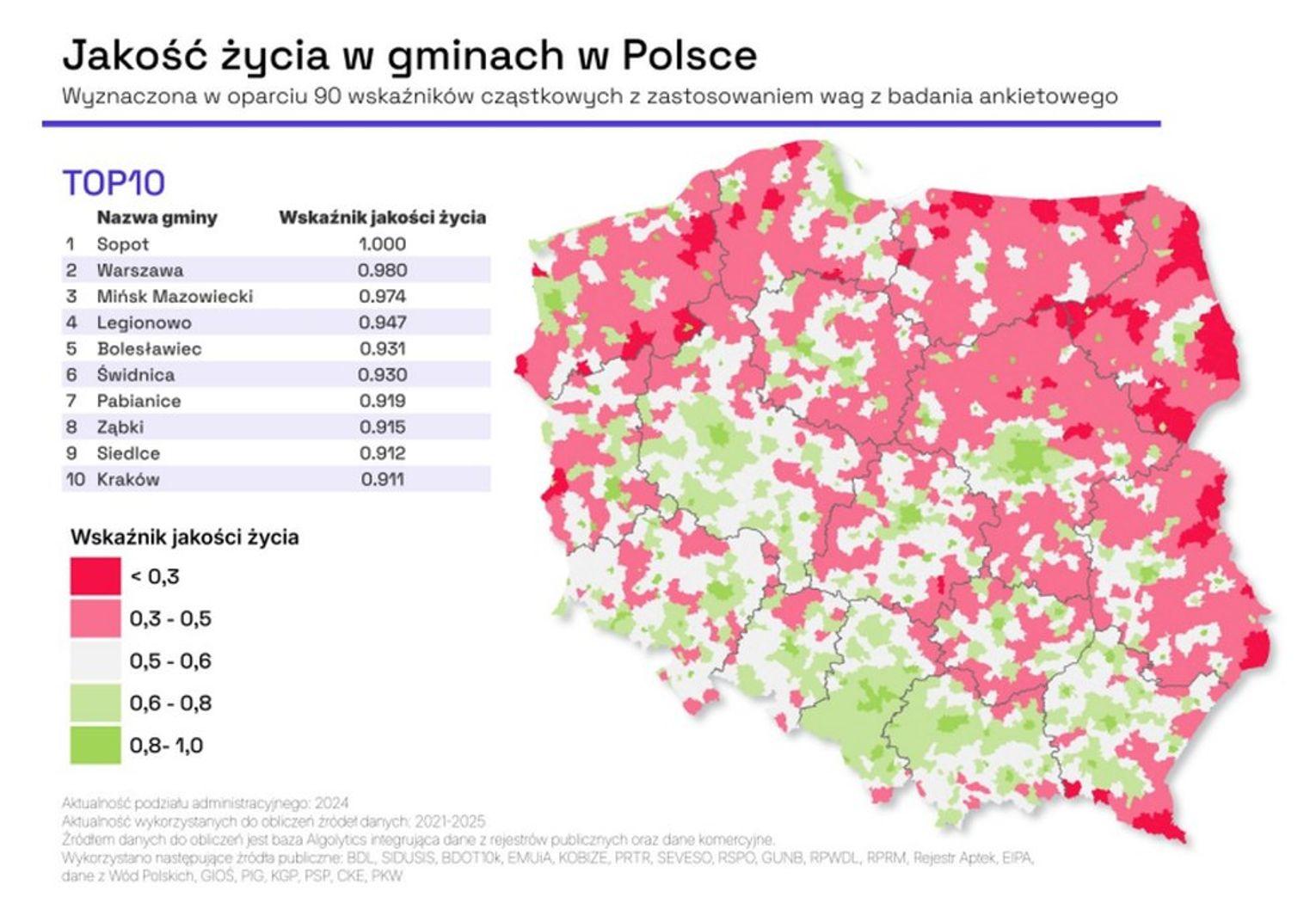 Za raportem stoi firma Algolitycs, która przygotowała go we współpracy z Agencją Badawczą SW Research. To 200 stron kompleksowej analizy jakości życia w każdej gminie w Polsce.