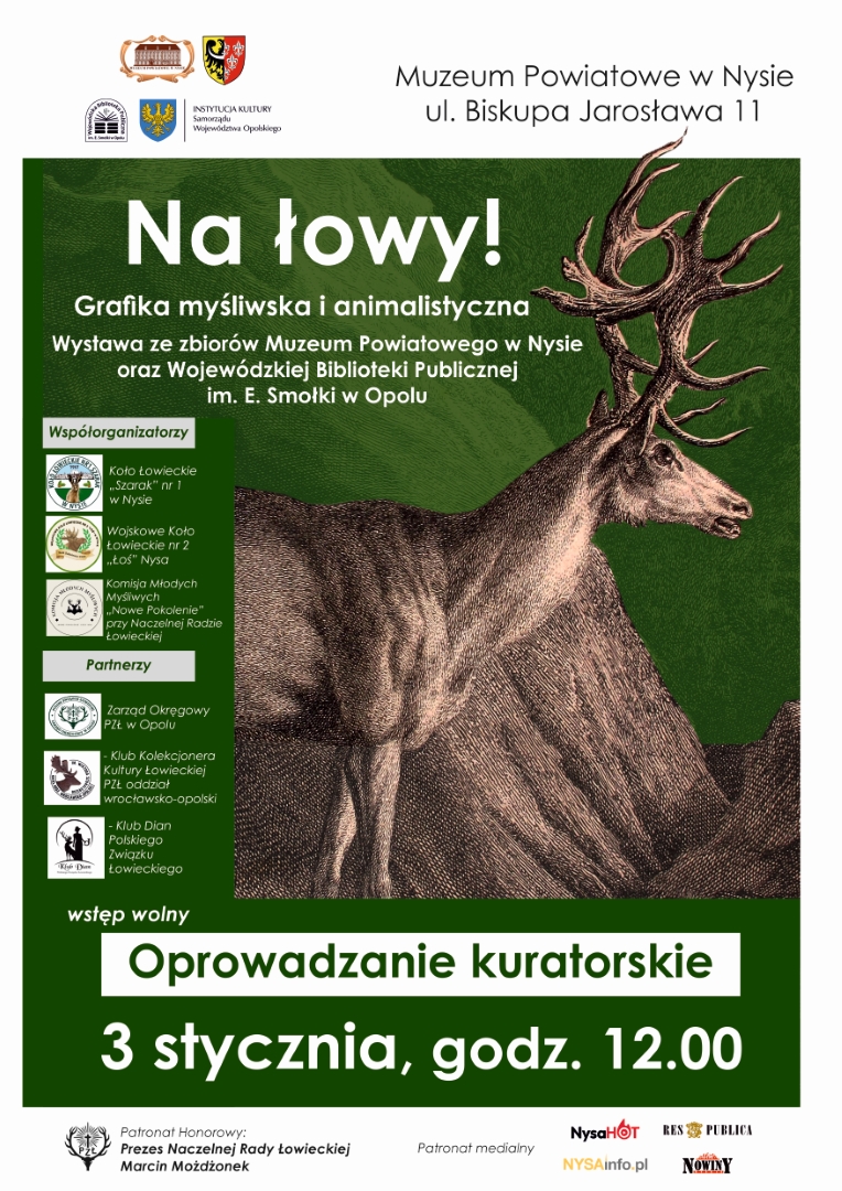 Na wystawie prezentowane są grafiki myśliwskie i animalistyczne ze zbiorów Muzeum Powiatowego w Nysie oraz Wojewódzkiej Biblioteki Publicznej im. E. Smołki w Opolu. Centralną część ekspozycji stanowią dzieła Johanna Eliasa Ridingera i jego syna Martina — artystów, którzy w XVIII wieku doprowadzili sztukę rytowniczą do niezwykłej precyzji. Ich prace zachwycają drobiazgowością, naturalistycznym ujęciem zwierząt i umiejętnością uchwycenia ruchu.