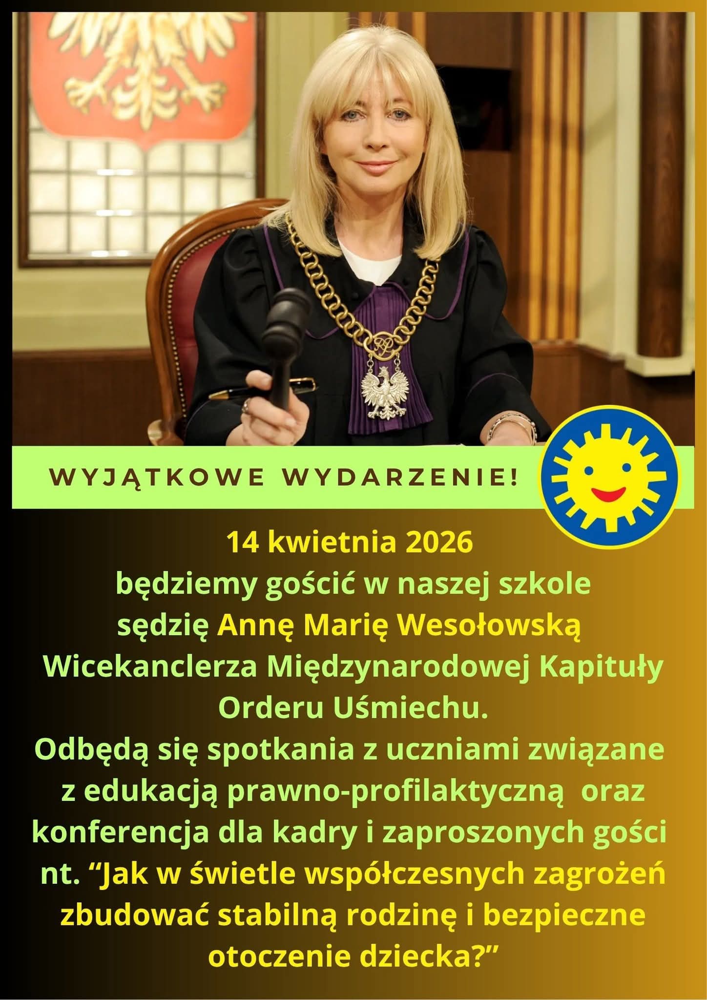 W ramach wizyty odbędą się spotkania z uczniami poświęcone edukacji prawnej i profilaktyce, a także konferencja dla nauczycieli i zaproszonych gości. Tematem przewodnim będzie budowanie bezpiecznego środowiska dla dzieci w obliczu współczesnych zagrożeń.