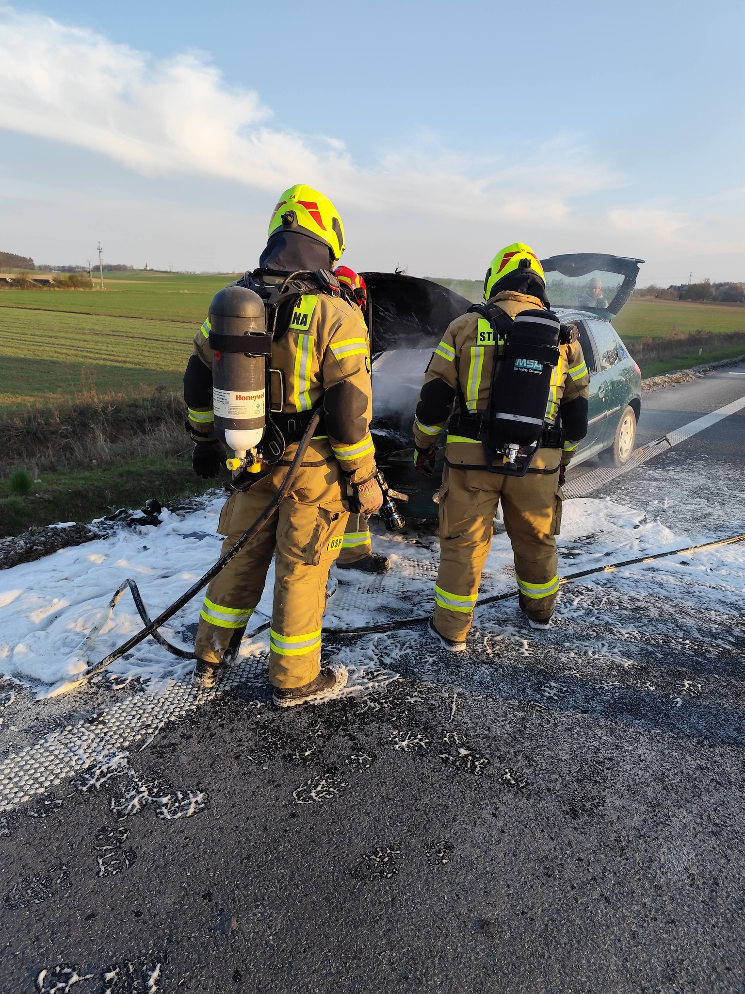 Samochód, w którym doszło do awarii zjechał na pobocze DK 46. Na czas prowadzenia akcji gaśniczej przez 3 zastępy straży, jeden pas ruchu w kierunku Opola był zamknięty. Sytuacja została szybko opanowana.